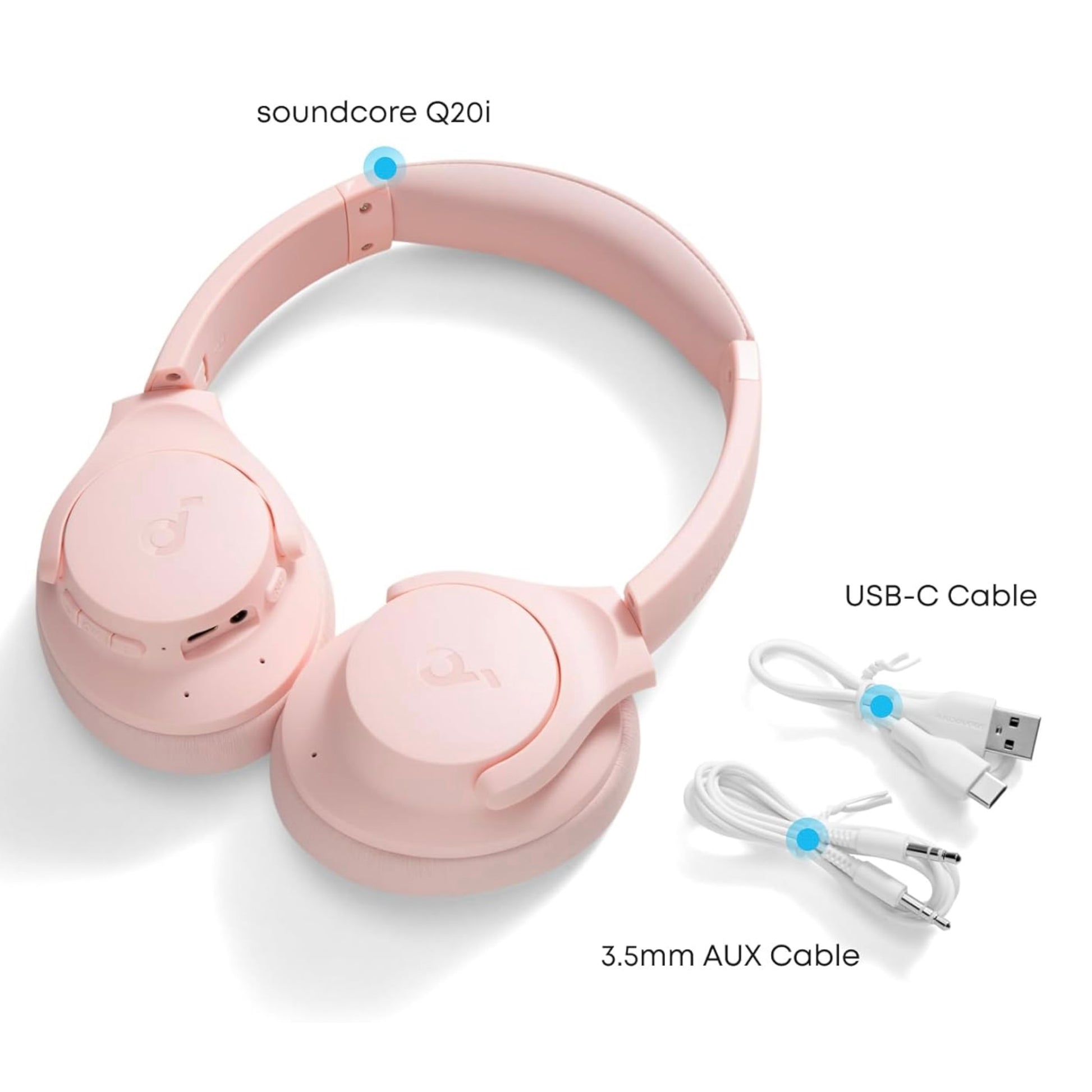 Casque hybride à réduction active du bruit, Bluetooth sans fil soundcore Anker Q20i - Rose