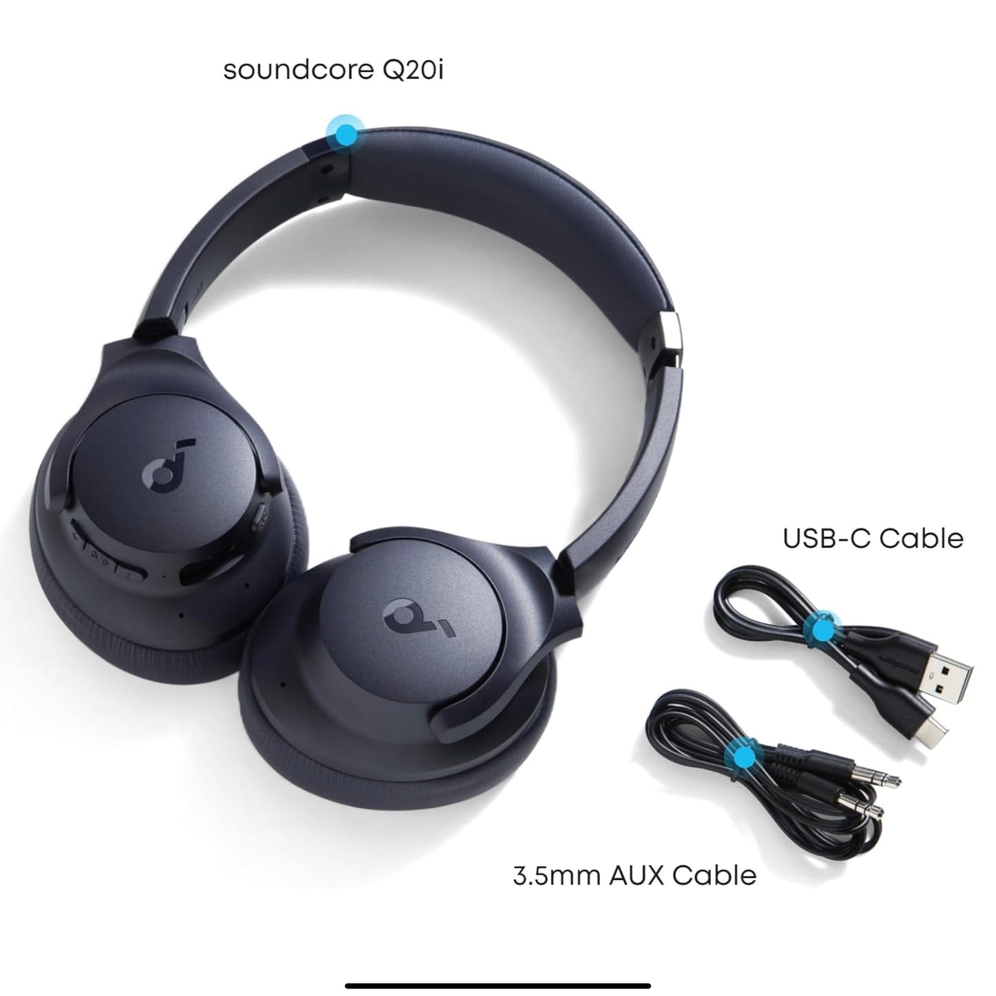 Casque hybride à réduction active du bruit, Bluetooth sans fil soundcore Anker Q20i - Bleu