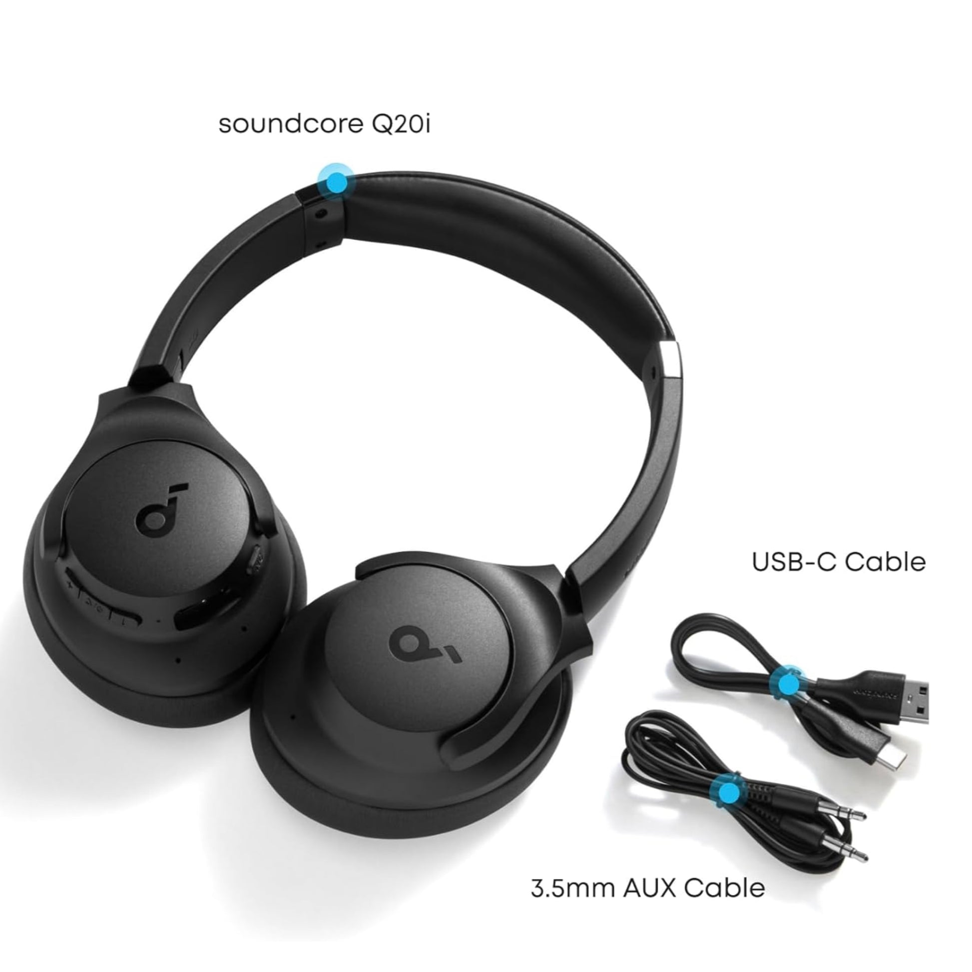 Casque hybride à réduction active du bruit, Bluetooth sans fil soundcore Anker Q20i - Noir